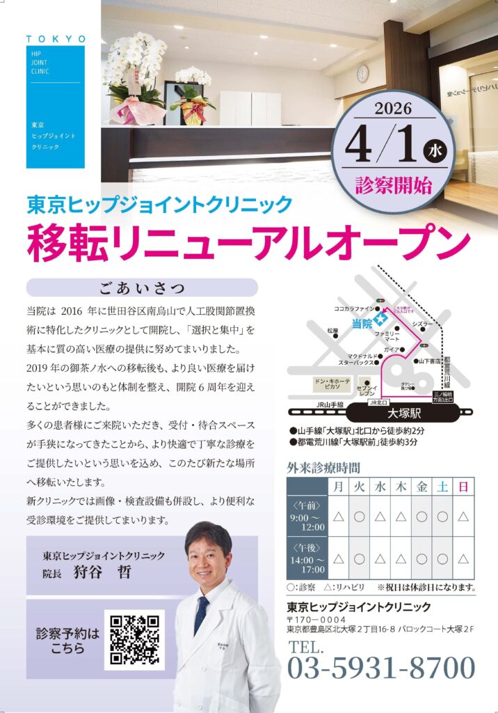 Home » お知らせ » 【東京ヒップジョイントクリニック移転リニューアルオープン】