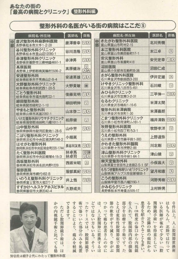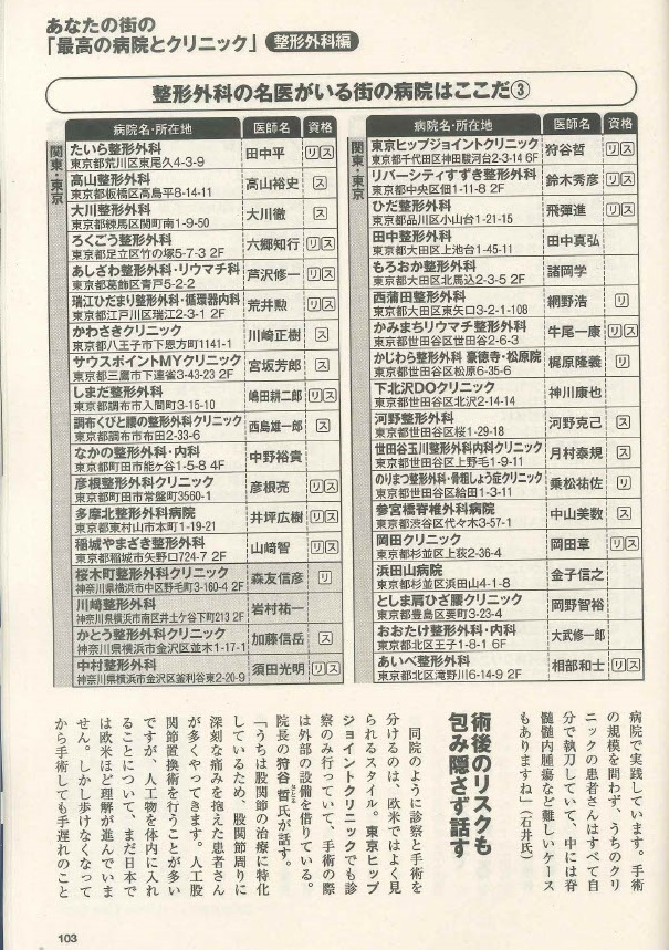 本日(2026/1/5)講談社より発行されました【週刊現代 最新号:2026年1月19日号 (発売日2026年01月05日)】 あなたの街の【最高の病院とクリニック・整形外科編】に掲載されました。 皆様、是非ご一読ください。