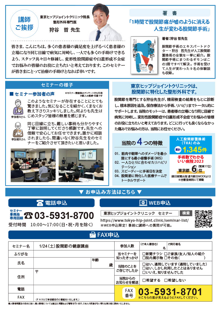 Home » 院長ブログ » 【股関節治療の最先端/健康相談会開催 2026-1-24】